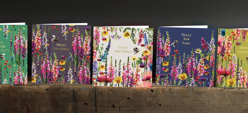COTTAGE GARDEN Inspired by a trip to Hampton Court Flower Show, each image features at least one bee, packed nested (envelope inside card, no packaging) - other options are available