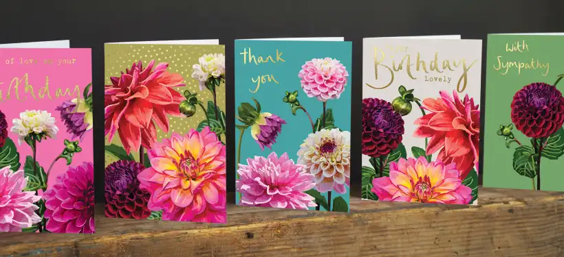 FABULOUS FOILS Brightly coloured stunning florals with foil detail for a sumptuous luxury look, packed nested (envelope inside card, no packaging) - other options are available
